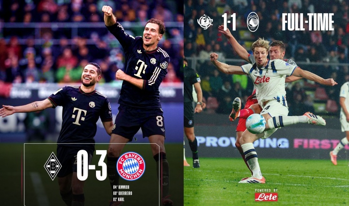 10月26日讯 周末赛事 日,德甲的拜仁3-0门兴,意甲的亚特兰大1-1克雷莫内塞,两队继续保持不败,仍是五大职业联赛 唯2不败的球队。