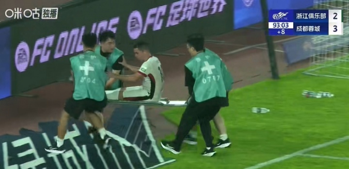 罗慕洛一度不愿被担架抬下场,最终被浙江担架队“火速”送出场外