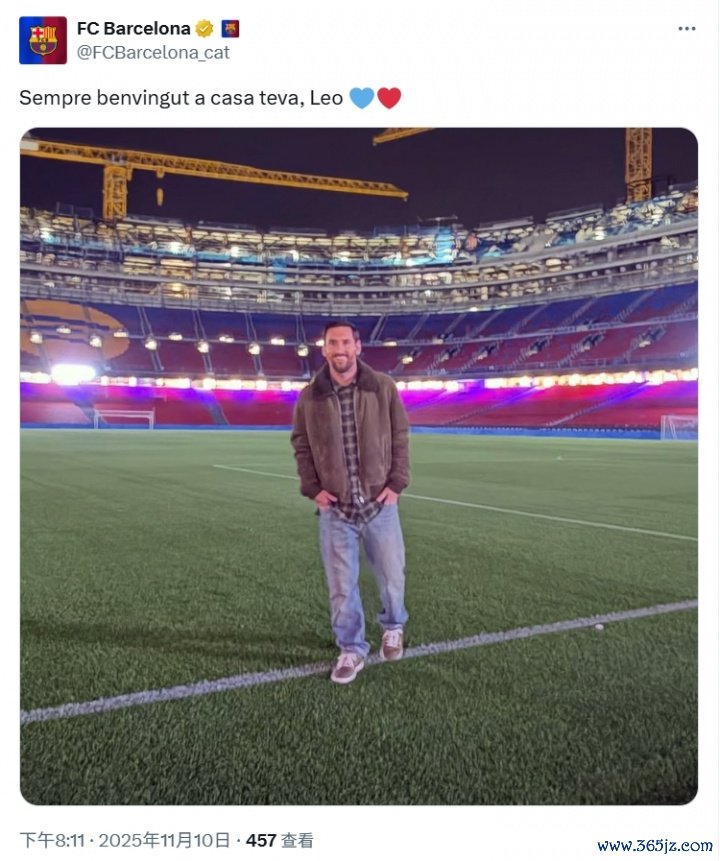 11月10日讯 梅西ins晒照腾讯意甲新闻重返诺坎普两小时后,巴萨官方发文:欢迎你随时回家,欧洲杯直播莱奥。