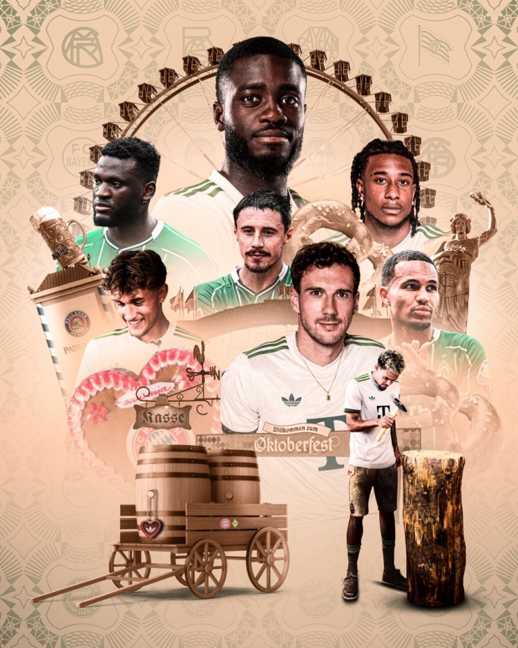 拜仁官方社媒晒出了啤酒节风格海报hg0088hg0088官方网站,欧洲杯直播吧于帕梅卡诺、格雷茨卡、奥利塞、比朔夫、迪亚斯出镜。