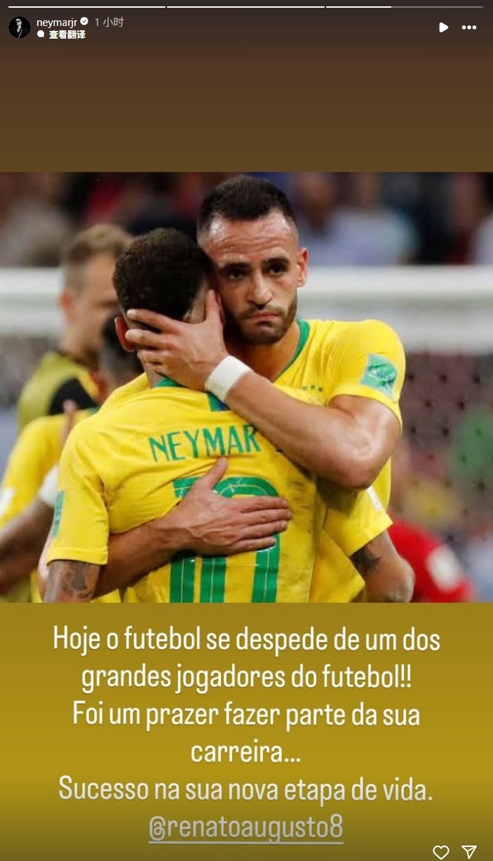 9月29日讯 内马尔更新Instagram,祝福了退役的奥古斯托。