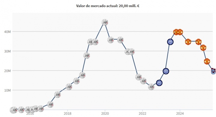 10月01日讯 德转更新土超职业联赛 球员身价,曼联外租特拉布宗体育的守门员奥纳纳身价再次下跌500万,来到2000万欧元。