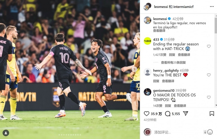 满分发挥收官!梅西晒庆祝得分 照片:常规赛结束,季后赛见!